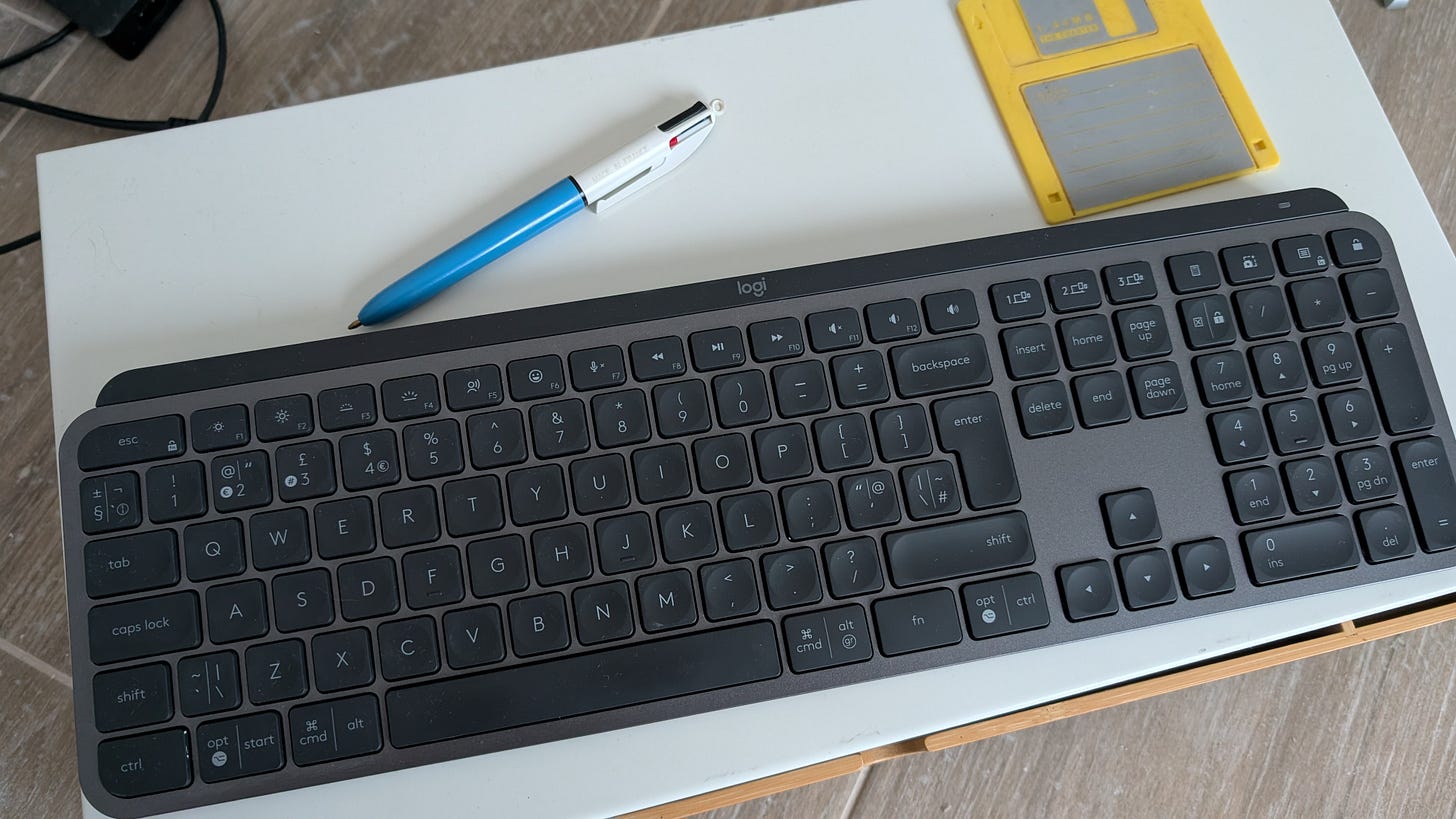 My desk was fine. Decent setup. Modern, new. I don’t trust wireless keyboards, though. The monitor was too high, an easy fix. LG 4K, solid. But the chair back was the wrong angle. I couldn’t get it right. It was one of those ones that was either static or moving. No clicks. You have to hold the lever, get into a position you like, release it, and hope it’s right. Kept fiddling at it all day. I think it’s fine now. Will see. Not sure if I have a chair budget.