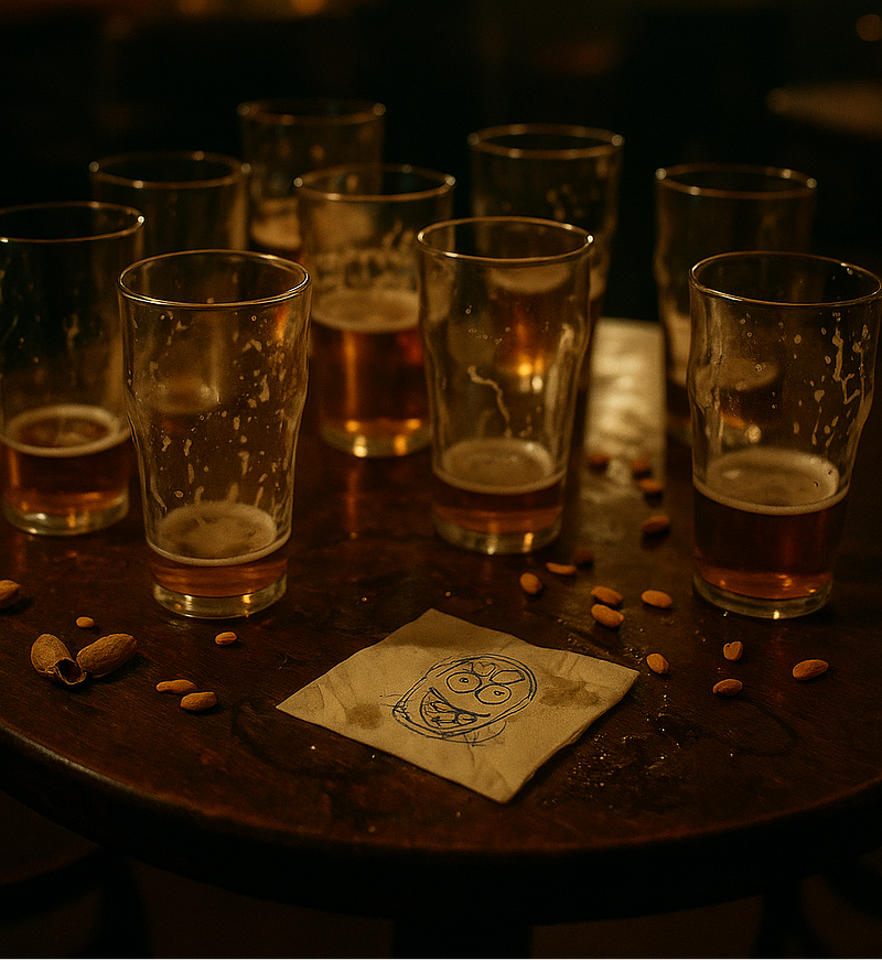 Popped into the pub near the station. Two pints. Three tops. To take the edge off the week.