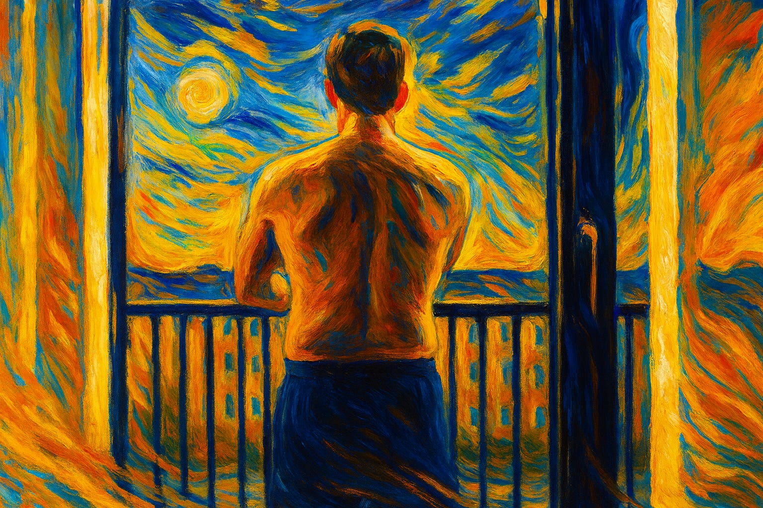 Had spent all morning cleaning. Was hot and sweaty. Only went on the balcony to cool down for a minute.