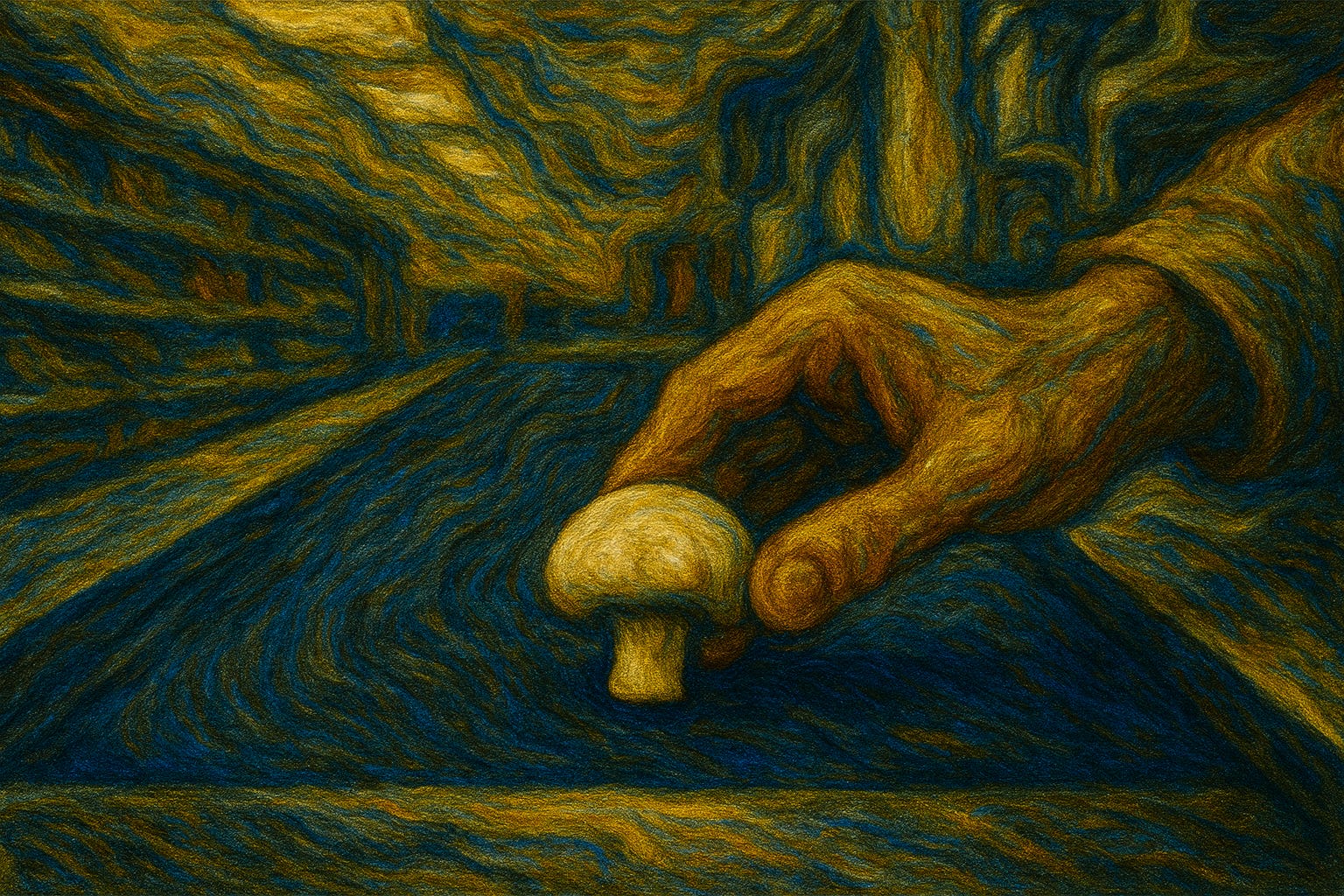 A man was trying to scan a single mushroom at the checkout. No bag. He was holding it like an offering. We made eye contact. He smiled. I looked away like it hadn’t happened.